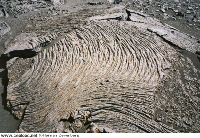 Ribbels in gestolde lava bij de Askja vulkaan, IJsland.