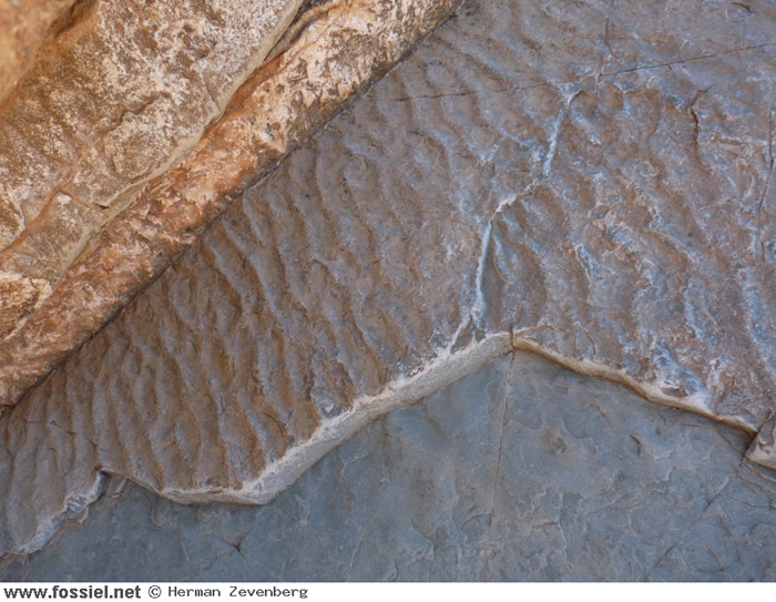 Golfribbels bewaard gebleven in steen. Gefotografeerd tussen Igherm en Tafraoute, Marokko.