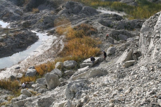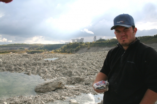 Tegen iets na 24 uur het bed in en de volgende morgen ook tegen half 8 op, zodat we tegen 10 uur terug de groeve in waren in Misburg. Hier zijn we nu richting het 'Jachthavenplateau' gegaan helemaal achteraan in de groeve en hebben we hier gezocht. Hier stroomde ook een watervalletje en daar moesten we langs. Op dit plekje heb ik een paar leuke vondsten gedaan net zoals een ander select groepje. Ook heb ik een paar mooie ammonieten gezien en heb ik een mooie ammoniet en Salenia bemachtigd van de groeve zelf door een ruil met Tom.