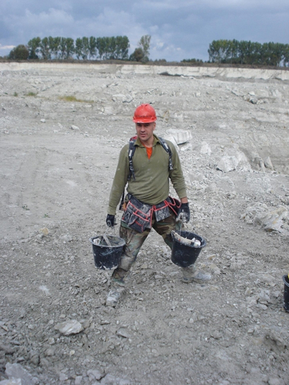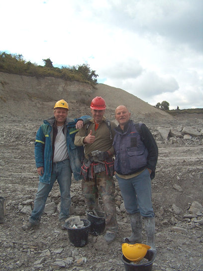 Na een regenachtige nacht (opnieuw was ik blij dat ik niet in een tent sliep) opnieuw naar de groeve. Daar aangekomen hebben we eerst een groepsfoto gemaakt en vervolgens is iedereen weer zijn gang gegaan. De vondsten waren weer prachtig en ook het weer zat voor het eerst eens mee. Het was warmer en zelfs de zon is af en toe doorgekomen. Tot een uur of 3 heb ik gehakt en daarna ben ik samen met Cor en Camiel naar Venlo gereden. Hier zijn we opgesplitst en uiteindelijk ben ik na een slopende treinreis (vertragingen, missende aansluitingen enz.) om half 12 thuis aangekomen. De volgende morgen zat ik om 7 uur weer in de trein, doodmoe maar wel voldaan.