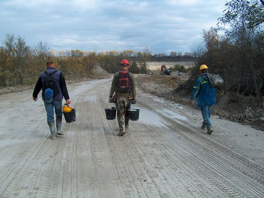 Na een lekker ontbijtje met een beperkt clubje (had niemand honger???) zijn we met een auto of zes gezamenlijk naar de groeve gereden. Door de goed georganiseerde leiding kwamen we in één keer goed uit bij de groeve (of was het de tomtom?) alwaar we even hebben gewacht op de laatkomers. Om tien uur zijn we uiteindelijk verder het terrein opgereden over een modderig paadje. Aangekomen op de bestemming zijn we vol goede hoop op mooie vondsten de tocht naar de groeve begonnen. Het was bewolkt, maar het regende niet dus dat viel mee. Eenmaal in de groeve ben ik samen met Cor en met Rickie opgesplitst en we zijn bij een kleine helling begonnen.