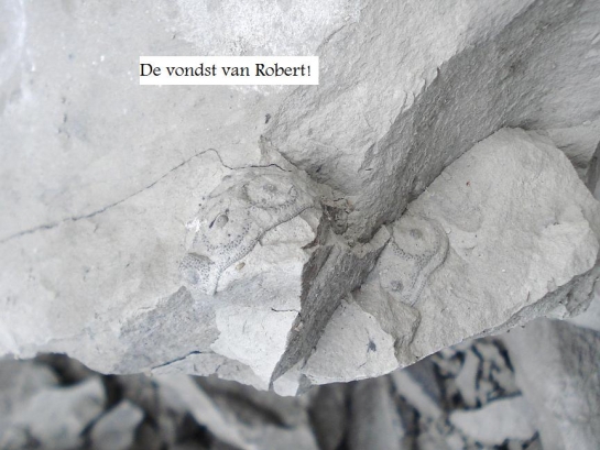 Dé vondst van Robert. Commentaar van Mart Deckers (Caveman) op de vondst van Robert: Hele exemplaren zijn uiterst zeldzaam, zou je er een hele bij hebben heb je de vondst van het jaar naar mijn mening! Goed gewerkt! Foto: Martijn Schalk