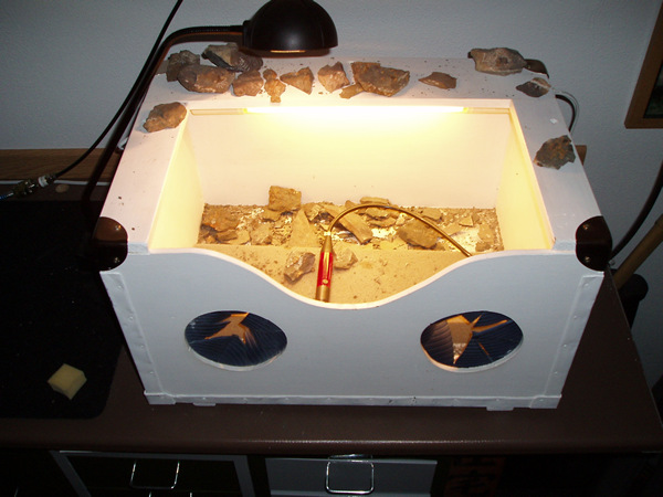 Verder is een prepareerkast handig om de wegspattende deeltjes bij elkaar te houden. Zo'n kast is eenvoudig zelf te maken. Het exemplaar op de foto is gebouwd uit een oude thermo-kist van het Joegoslavische leger. Zorg ervoor dat als je de kast zelf maakt, je er goede verlichting in aanbrengt, zodanig dat je jezelf niet in het licht zit. De twee armgaten zijn voorzien van rubber flappen om te voorkomen dat er matrix uit spat. Verder is het handig op de bodem een stuk schuimrubber te leggen waar je veilig je stuk op kan leggen. Het schuimrubber dient ook tegen het doorresoneren van het trillen van de beitel en geloof me dat schuimrubber is een investering voor je relatie .