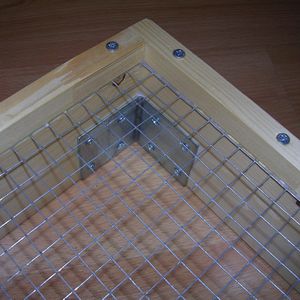 - Zet het gaas goed vast. Je kunt het best vastklemmen door er een extra latje overheen te schroeven. Dit voorkomt dat het gaas snel los kan gaan van het frame van je zeef.