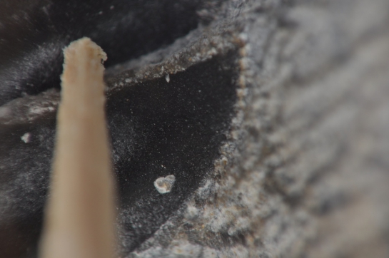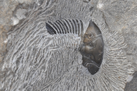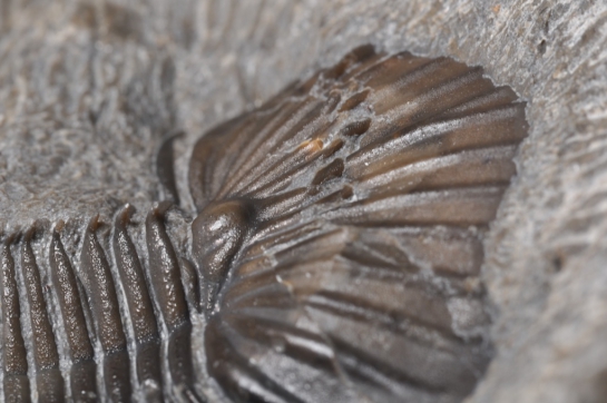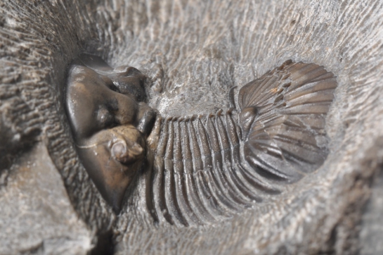 De trilobiet blijkt over de dorsale as een rij kleine stekels te hebben. Doordat ik dit niet meteen verwacht, raakt de tip van de achterste stekel beschadigd. Dit ondestreept het belang van anatomische kennis bij preparatie nog maar eens. De stekels worden voorzichtig vrijgelegd met een fijne preparatiepen. Bij één stekel loopt het mis, ze breekt af en wordt onmiddellijk door de luchtstroom weggeblazen, het gruis op de preparatietafel in. Ook de zoom van het pygidium is bezet met microscopisch kleine stekeltjes, zelfs nauwelijks zichtbaar onder vergroting.