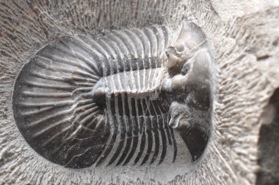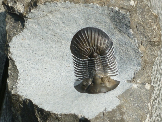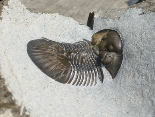 Hieronder het stuk zoals verworven, de trilobiet ligt met de rugzijde hol gekromd, geen evidente positie voor een preparatie.