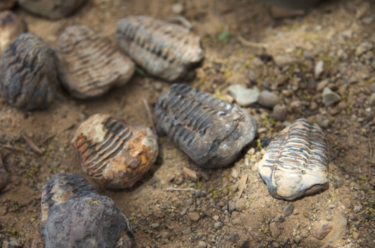 In een andere Ordovicische site zoekn we naar de typerende Calymeniden. Op de colluviale vlaktes nabij Alnif kunnen we verschillende Flexicalymenes bij de staart vatten. Deze zitten meestal in nodules. Het betere materiaal kan je hogerop in de heuvels van Jebel Tiskaouine vinden, maar dan is het weer hard werken. Voor wat, hoort wat.