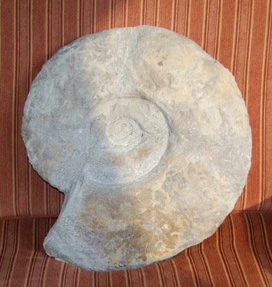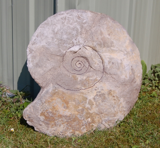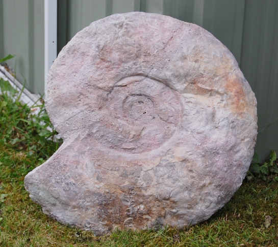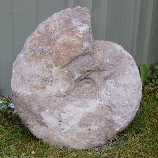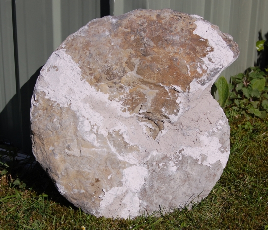 Hoe groter een fossiel is, hoe groter tevens de kans wordt dat deze in verschillende brokstukken en met ontbrekende delen wordt gevonden. Dat was bij deze 40 cm. grote ammoniet uit het Cenomaan van Rheine ook het geval. Soms laten verzamelaars de brokstukken achter, omdat ze liever een heel exemplaar hebben of omdat ze denken dat ze er geen toonbaar geheel meer van kunnen maken. In dit geval werden de delen gelukkig wel geborgen en heb ik ze geschenk gekregen. Het fossiel bestond uit 5 stukken, waarvan sommigen nog aan elkaar pasten, maar helaas ontbraken er ook forse delen en vertoonden de onderlinge delen na het passen hier en daar grote kieren en scheuren. Toch bleek dit niet onoverkoombaar te zijn.
