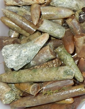 Twee voorbeeldvormen van belemnieten: sigaar- en naaldvormig