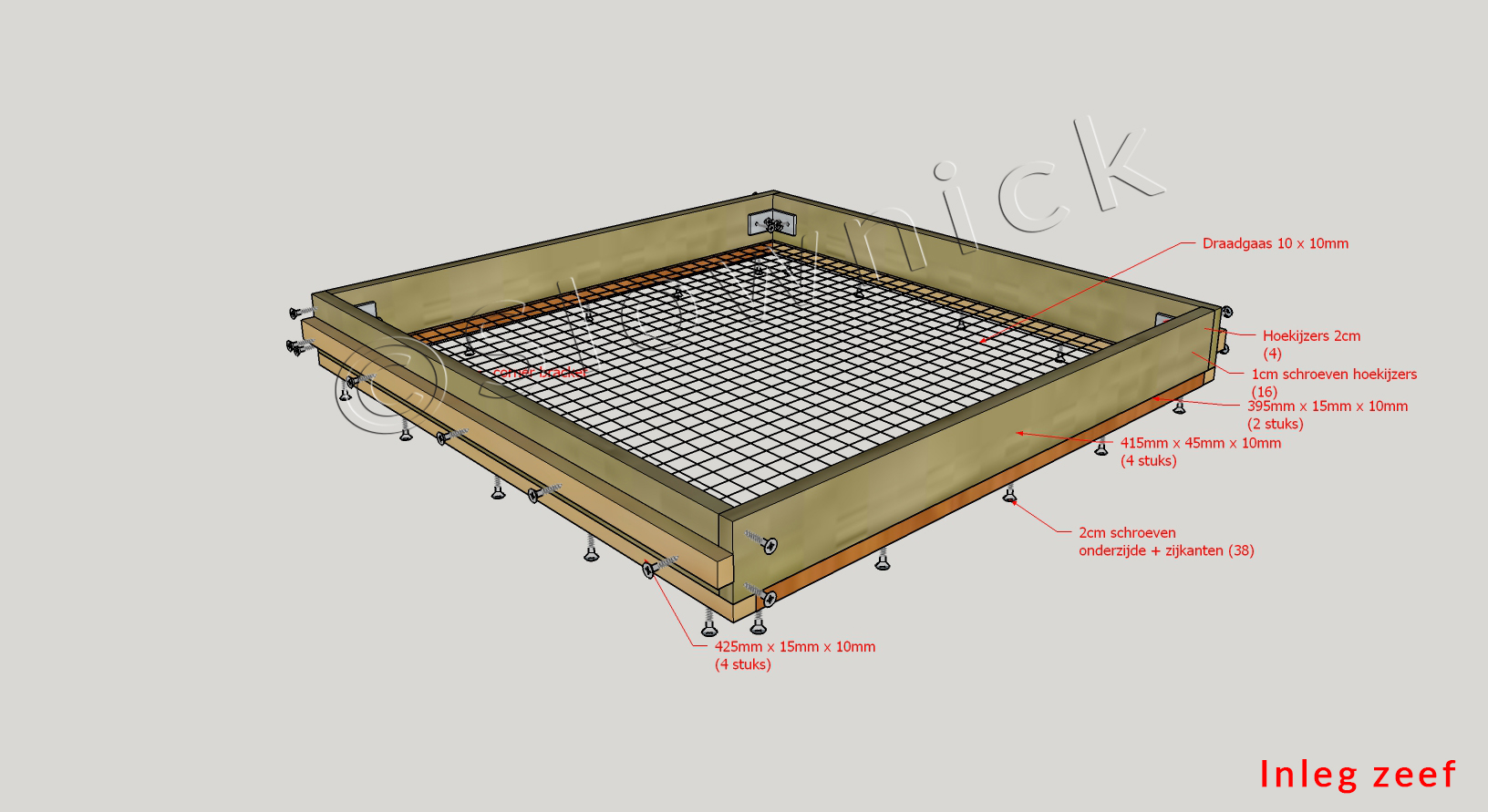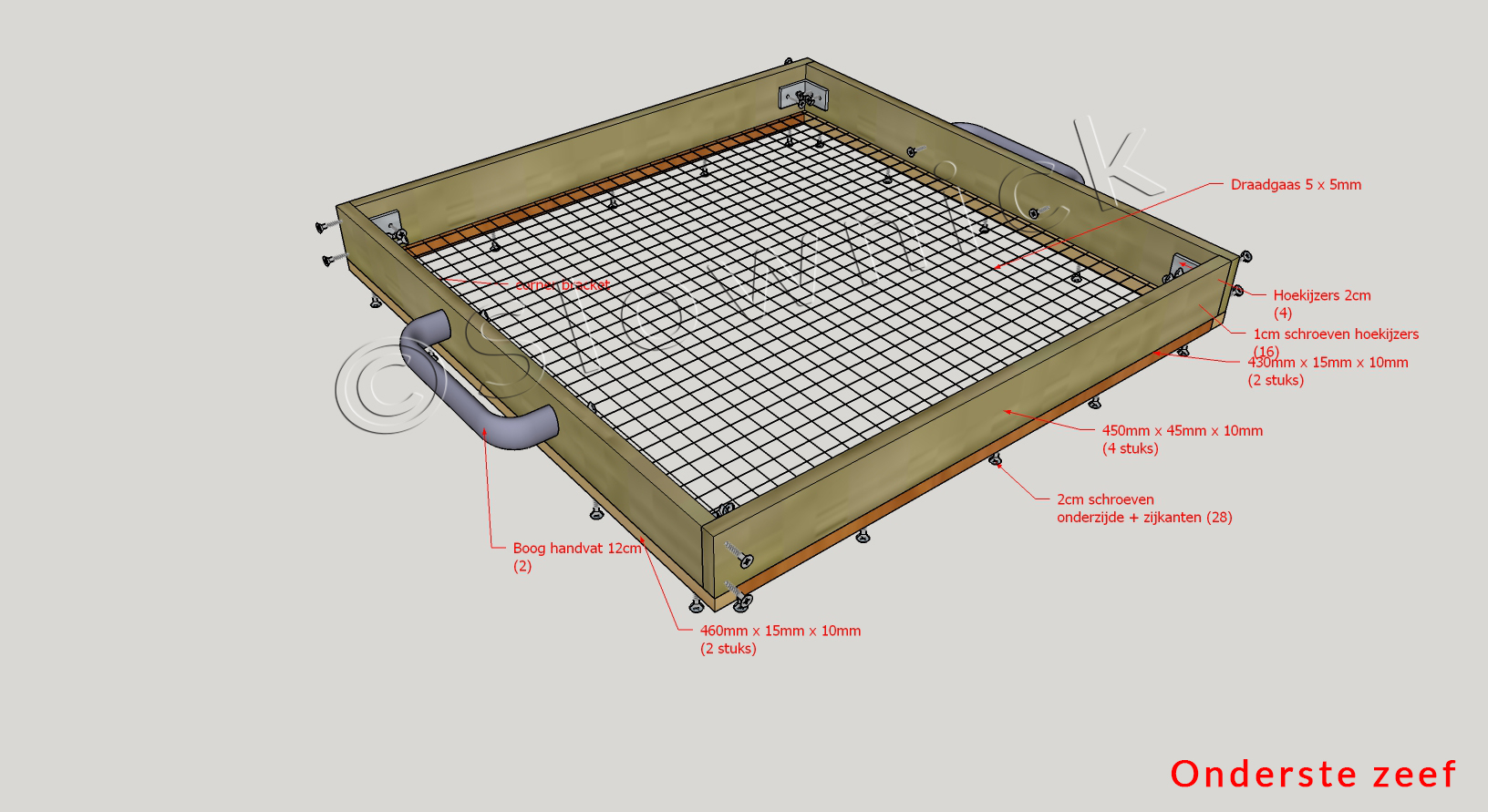 De inlegzeef past precies in de onderste zeef in dit ontwerp.