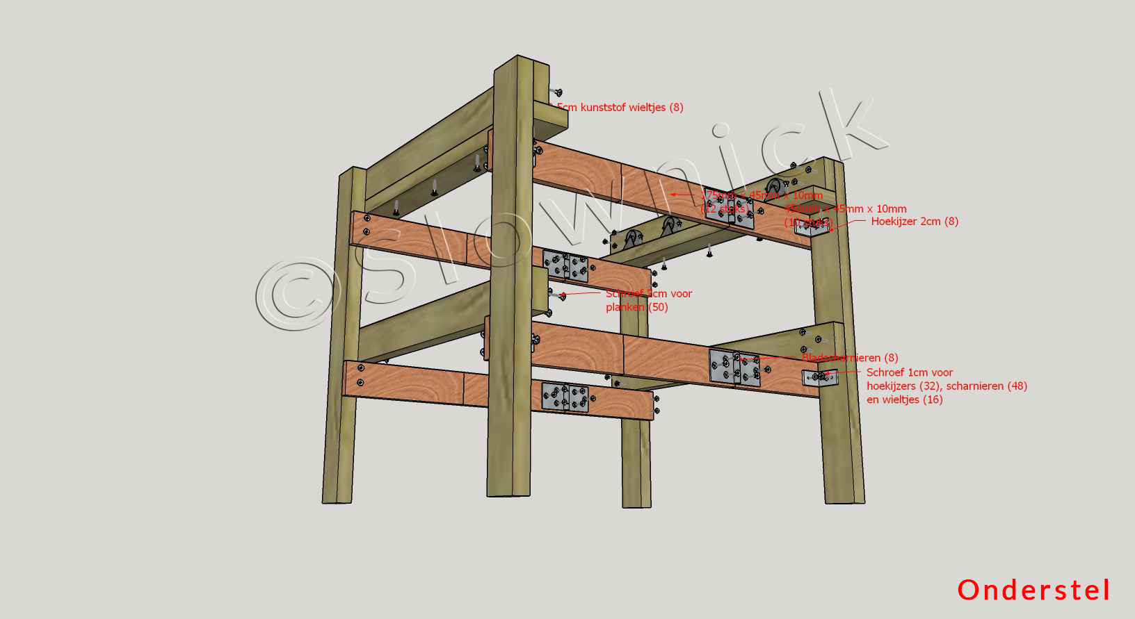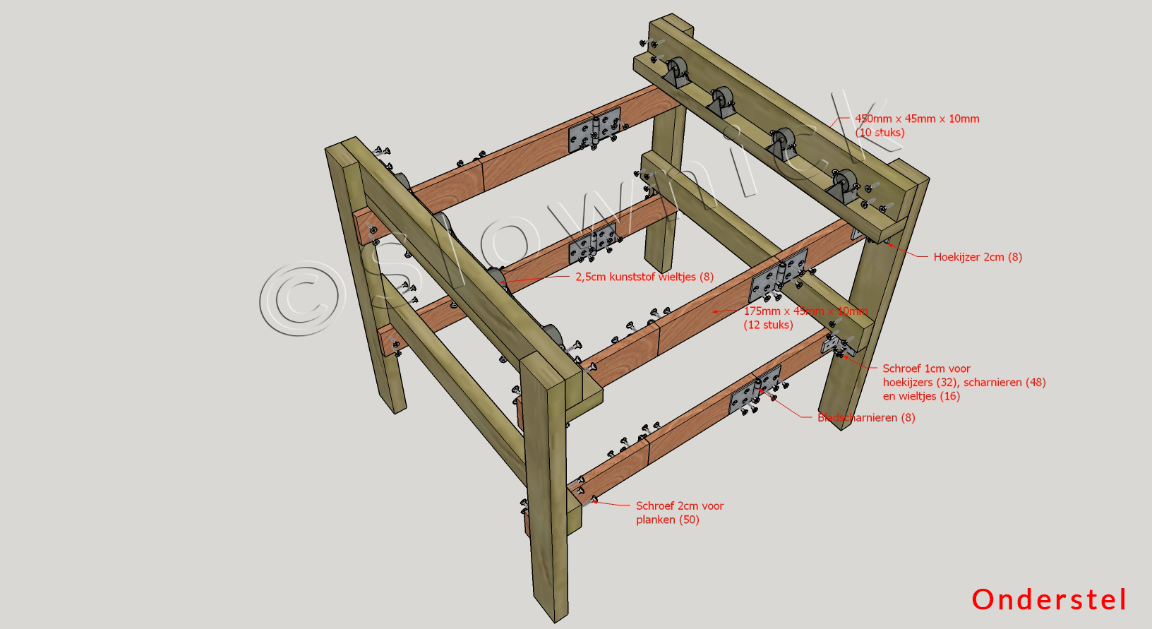 Het onderstel kan dichtgevouwen worden, zodat het minder ruimte in de auto inneemt, maar toch zeer stevig is.