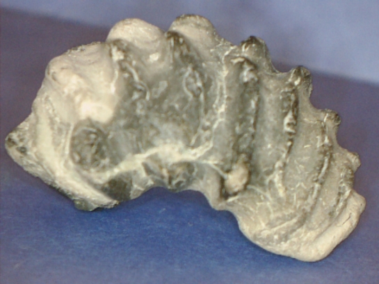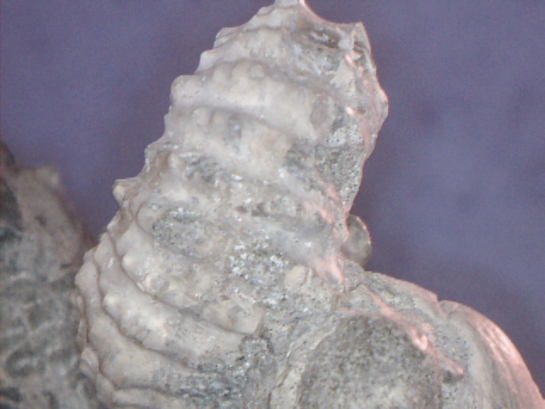 De P1 is voor mij een beetje mytisch; ik heb ze nog nooit ontsloten gezien; ik heb wel enkele fragmenten die ik aan deze laag toeschrijf; onder ander het afgebeelde fragment van een Hemisonneratia (Protohoplites) dit is de eerste vertegenwoordiger van de familie der Hoplitidae. Bij Sonneratia lopen de ribben nog door over de venter maar hier zit er reeds een deuk in.