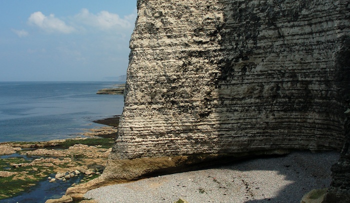 De gelaagdheid aan deze klifkust is vrijwel horizontaal.