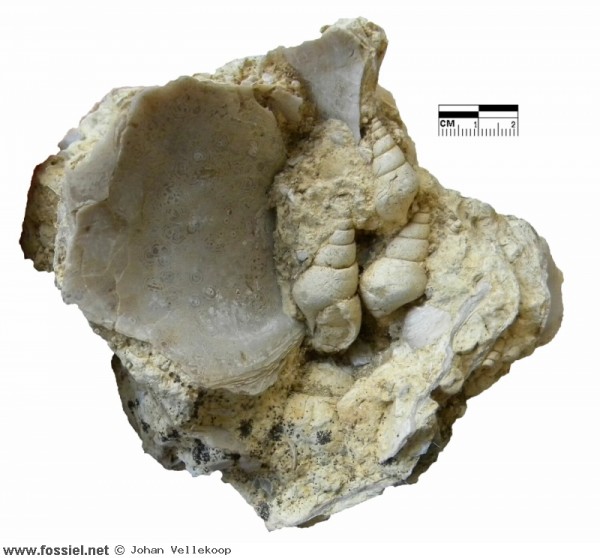 De bivalve is gedetermineerd als Ostrea wilckensi (Ihering, 1907).
