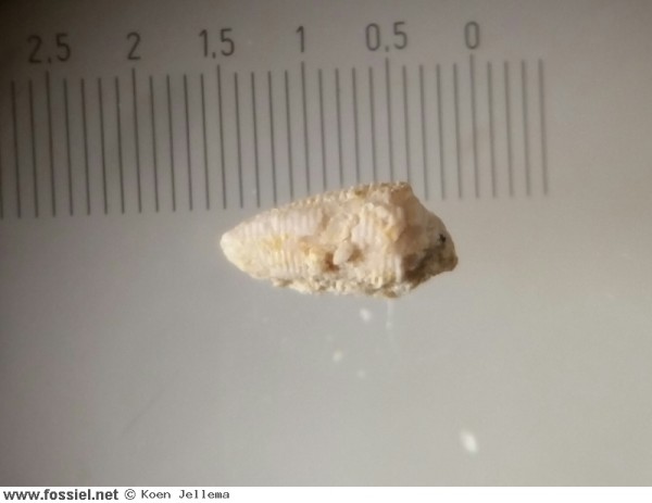 Gevonden in Fleury-la-Rivière. Afstand tussen maatstreepjes is 0,1 mm.