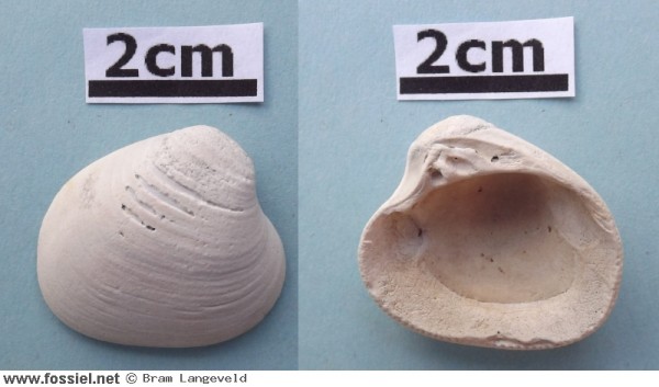 Astartidae zijn over het algemeen erg lastig te determineren, maar deze soort is aardig te herkennen aan de typische vorm. Determinatie aan de hand van Moerdijk et al. (2010).