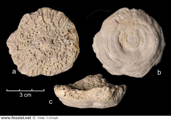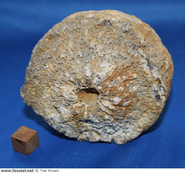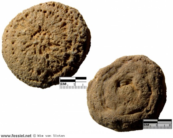 Meest voorkomende Ordovicische zwerfsteenspons van Oost-Nederland (WWW-gebied). Zwerfsteensponzen zijn in het Menapien (tussen Tertiair en laat Pleistoceen) getransporteerd door de Baltische stroom. Je ziet hier de bovenkant van het basisdeel van de spons.