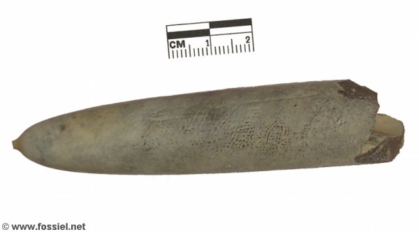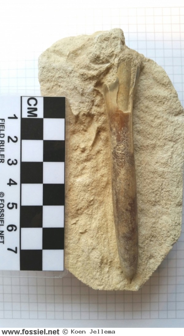Bij dit exemplaar zijn de dunnere delen van het rostrum ook deels bewaard gebleven.