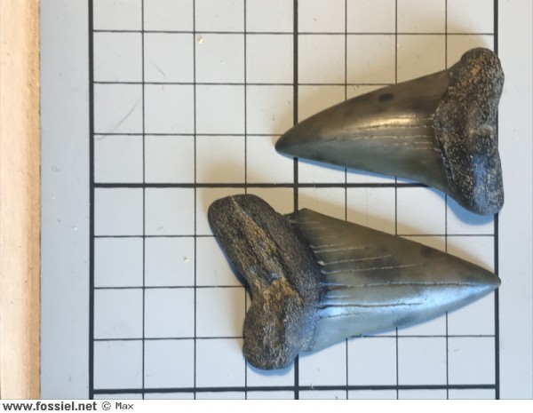 gekregen, 2 mooie charcharodon hastalis tanden van flinke grootte bijna helemaal compleet.