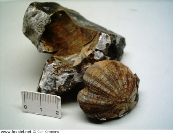 Positief (steenkern) en negatief (afdruk) in vuursteen. Locatie grindgroeve Teunesen.
