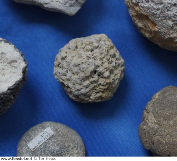 Lavenblauwe zwerfsteenspons uit de pliocene kaolien-afzettingen van Sylt. Typerend voor de zgn, 'oude Baltische stroom'