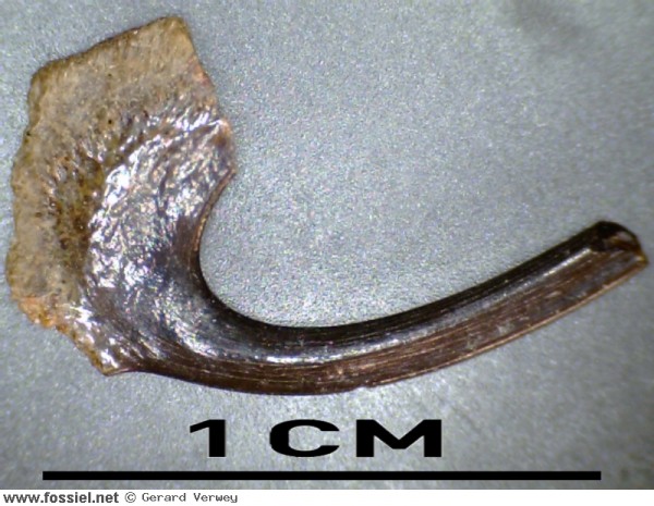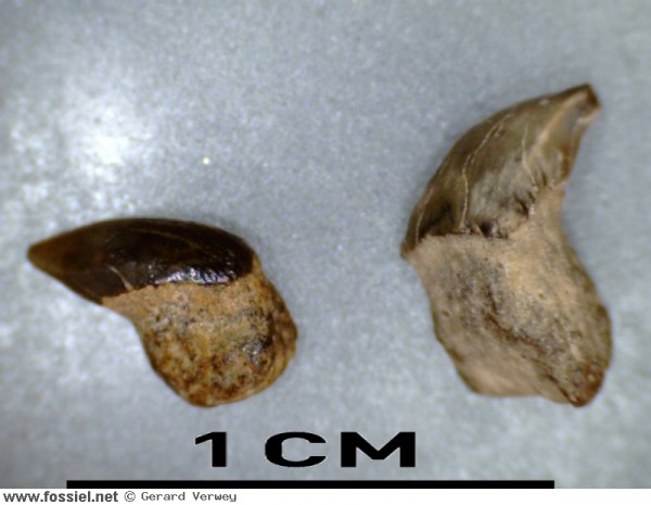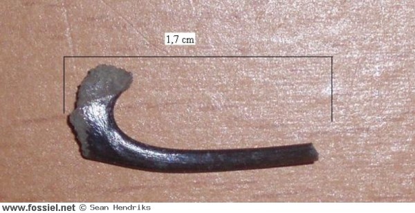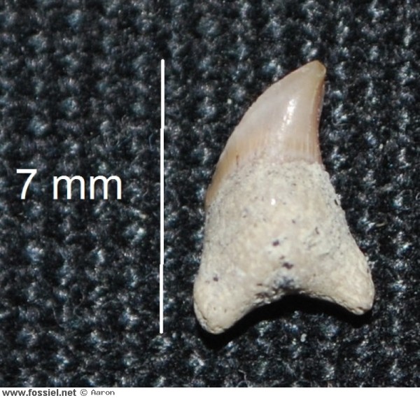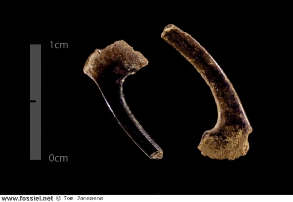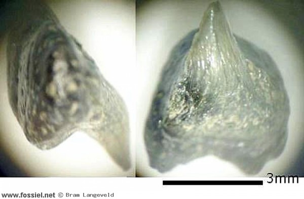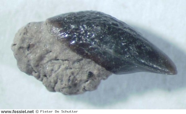 Dit tandje is opvallend door de complete wortel, wat je niet zo vaak ziet. Door de geribbelde kroon is hij toch goed te herkennen.