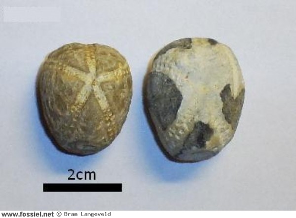 Vuurstenen steenkernen van zee-egels. Deze soort is niet heel algemeen.