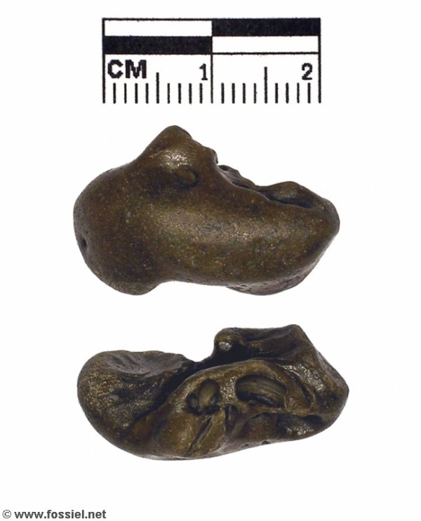 Perioticum (gehoorbeen) van een dolfijn. Op de foto onderaan is rechts een stukje van de cochlea (slakkenhuis) te zien. Geïsoleerde periotica van Kentriodontidae zijn vrij zeldzaam. Ze zijn niet op genus of soort te detemineren.