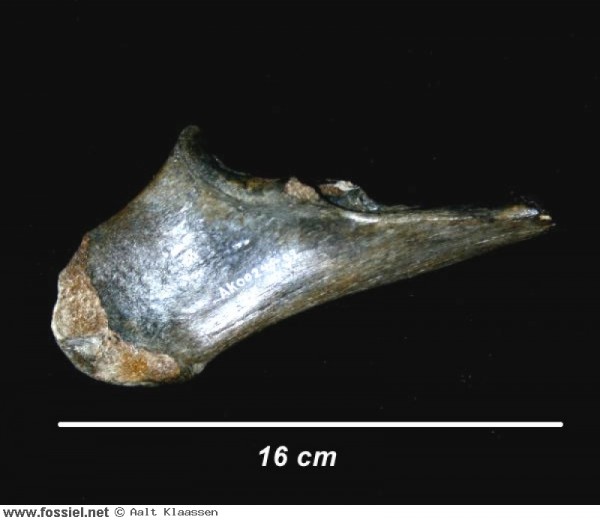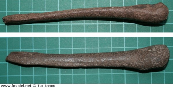 Humerus van een oerpaard. Het fossiel stamt uit het Pleistoceen en is pakweg 20.000 jaar oud. Gevonden in NW Overijssel, Nederland.