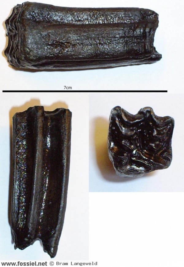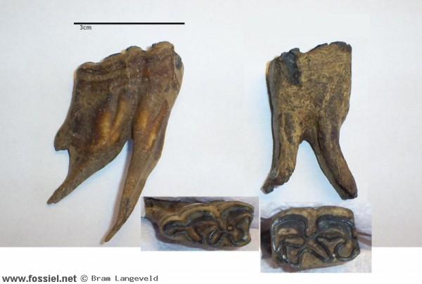 Onderkaakskiezen van een paard. Beide kiezen hebben nog wortels, wat ze zeker geen alledaagse vondsten maakt. Links de achterste kies uit de onderkaak, rechts een andere positie uit de onderkaak. Collectie Trudy Langeveld.
