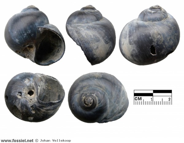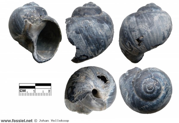 De grote tepelhoren. Gevonden op het Noordzeestrand van Schiermonnikoog. Verkleurde exemplaren van deze soort komen veel voor op de stranden van de Waddeneilanden. Vaak zijn deze nog wel doorschijnend en daarom waarschijnlijk niet zo oud. Af en toe zitten er ook minder of niet-doorschijnende exemplaren tussen (zoals dit exemplaar). Die zijn waarschijnlijk van laat-Pleistocene of vroeg-Holocene ouderdom.