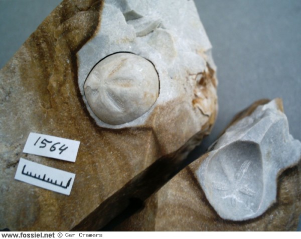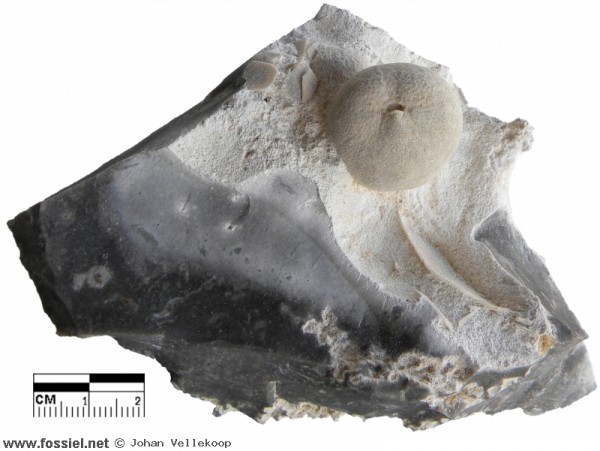 Steenkern in de vuursteen, met bijbehorende afdruk uit het zgn vuursteen-eluvium.