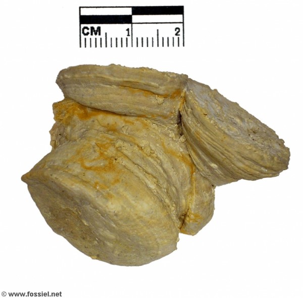 3 basis kleppen (huisjes van aragoniet, niet geconserveerd), op een hardground van de Meerssen member, waarop een gruislaag van foraminiferen en bryozoen is afgezet.
