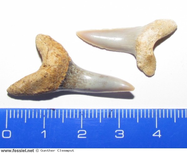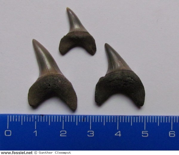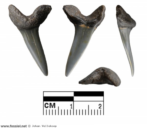 Tanden met de UA3 positie (= de derde bovenkaakse anterior). Deze worden vaak verward met Parotodus benedenii maar zijn smaller en slanker.