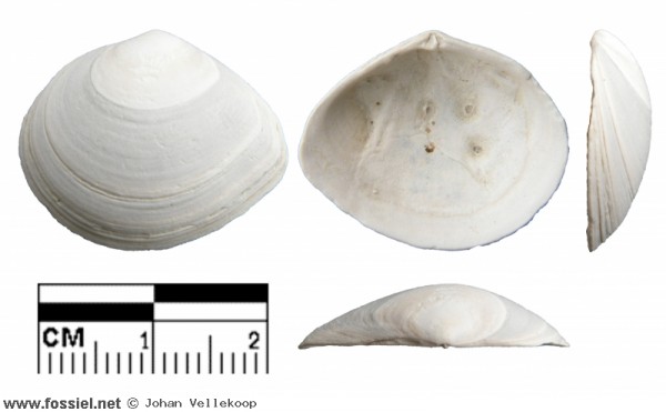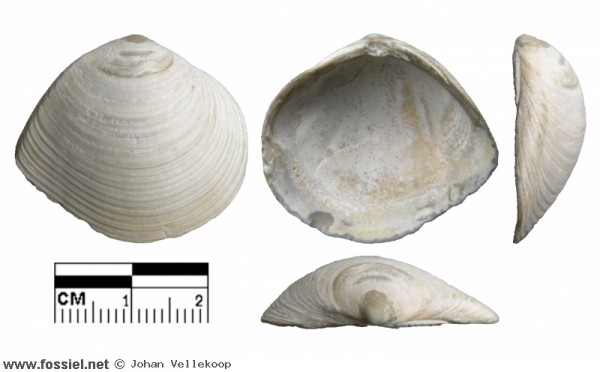 Gevonden op het strand van Zoutelande. Algemene soort in het opgespoten materiaal op de stranden van Walcheren. Van laat-Pleistocene of Holocene ouderdom.