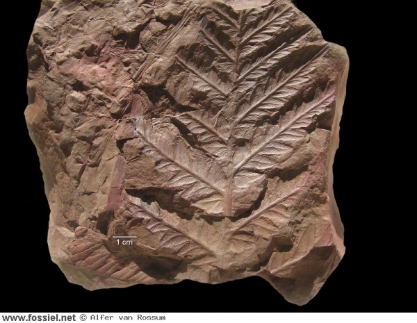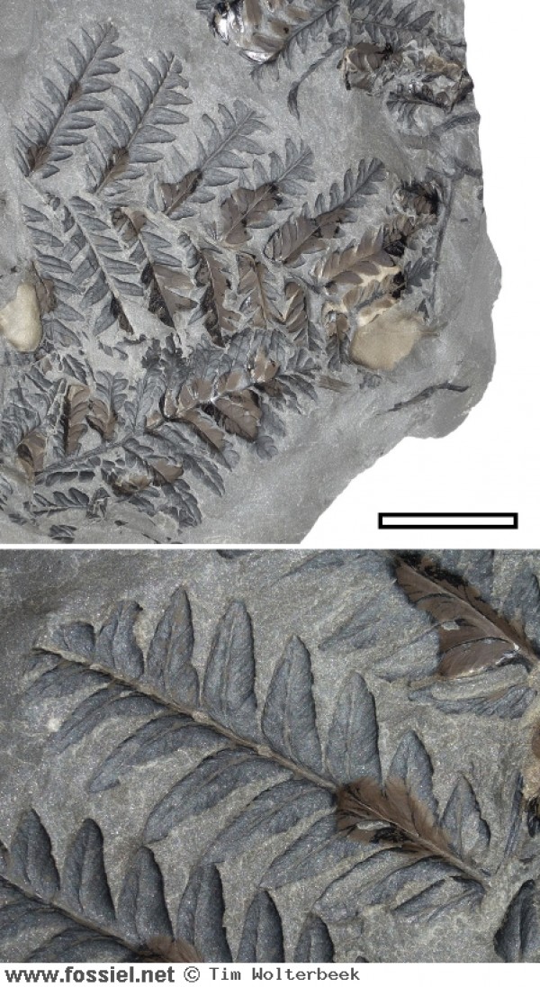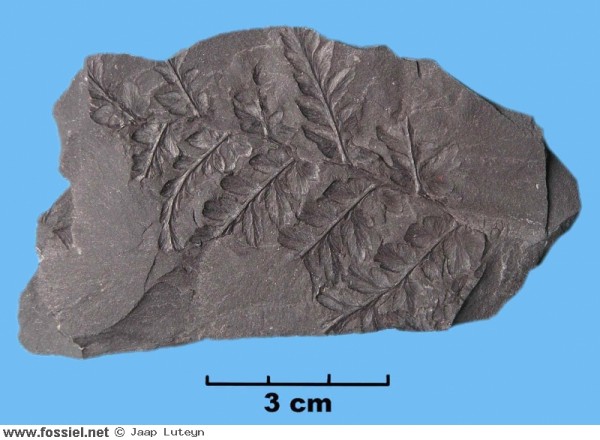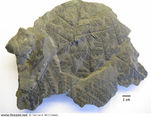 Schaalbalk = 5 cm. Het getoonde stuk komt uit de Ellis Eagle Coal Mine (ondergronds, uit de dakleien boven de Eagle Coal bed - Kanawha Fm., Westfaliaan B equivalent) in de buurt van Stickney West Virginia, Verenigde Staten.