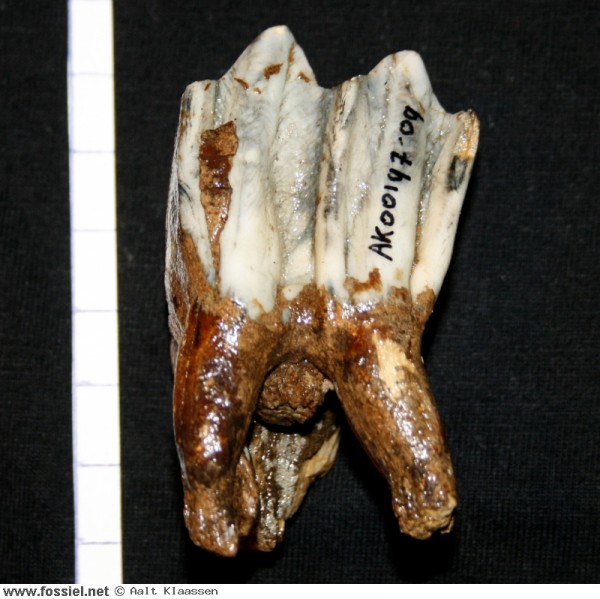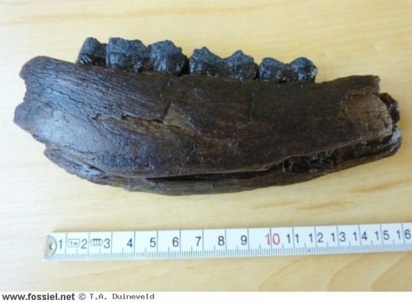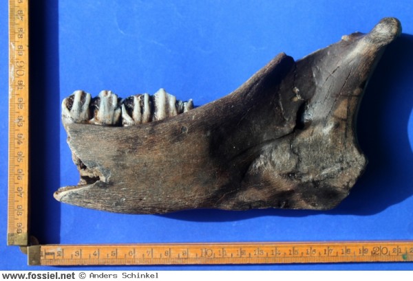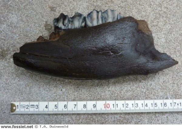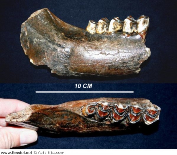 Halve linker onderkaak met m2 en m3 van een reuzenhert.