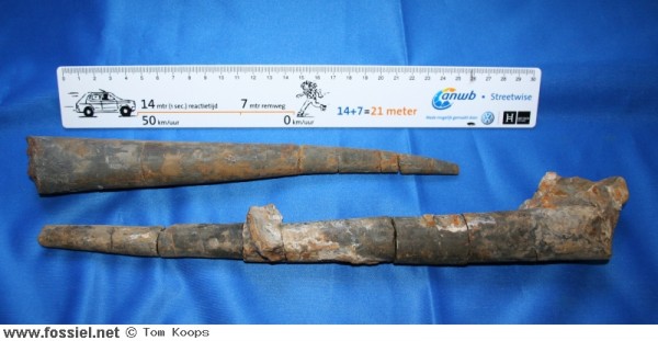 De groeven bij Velpe achter de Staloton-fabriek en de houtzagerij hebben vele vondsten van deze grote belemniet opgeleverd. Altijd gebroken en niet zelden gedeformeerd door gebergtevormende krachten die de opheffing van het Teutoburger Woud hebben veroorzaakt. Vaak ook bekend onder de naam 'Megateuthis gigantea'.