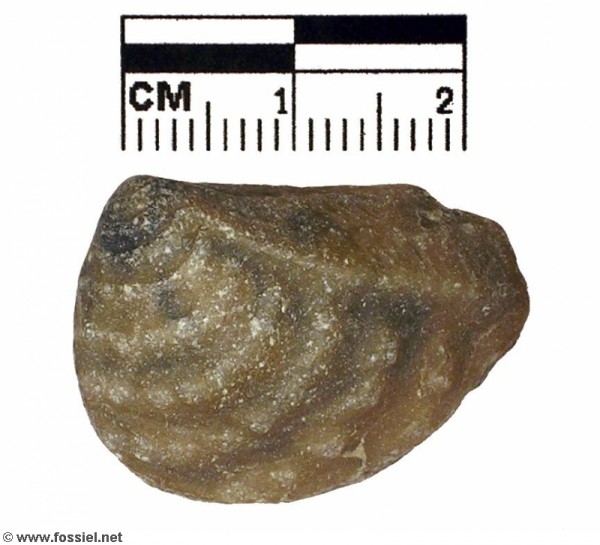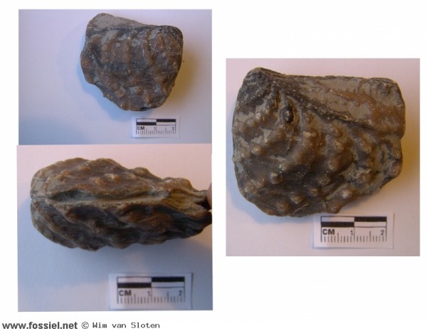 Deze tweekleppige zit nog echt als tweekleppige aan elkaar. De schelp kwam voor tijdens het Mesozoicum, van Onder Jura tot Onder Krijt. Gevonden op het strand van Viller-sur-mer. De schelp behoort tot de familie Triogonidae.