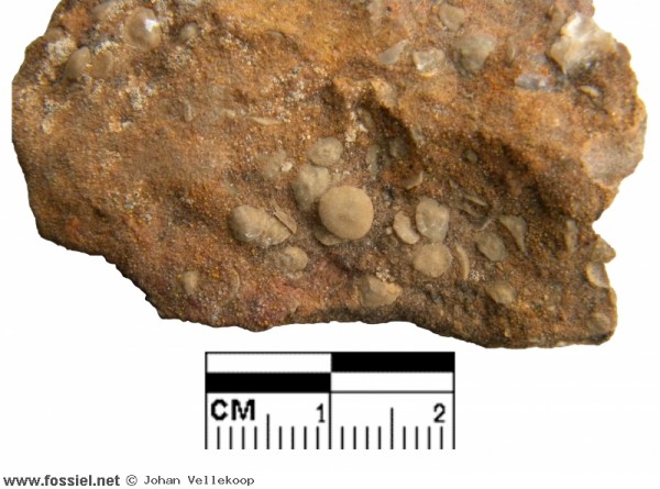 Normaal is een dwarsdoorsnede d.m.v. een slijpplaatje nodig om Orbitolina's top op soortniveau te determineren, maar op basis van de stratigrafie (Benassal Fm) kan ik vaststellen dat het hier om de Laat Aptian soort O. texana gaat.
