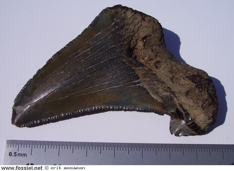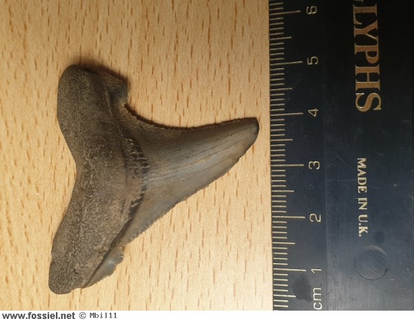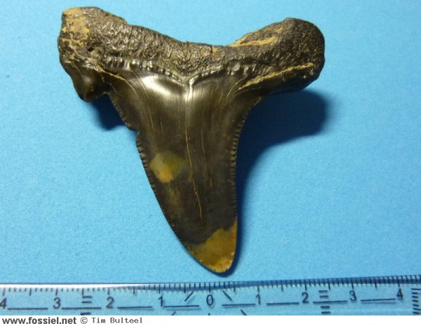 Deze Angustidens is in de Zwarte Polder gevonden na een stormachtig weekend. Er was een heel stuk van de duinen af geslagen en daardoor werden er veel grote tanden gevonden. Mogelijk Oligoceen.