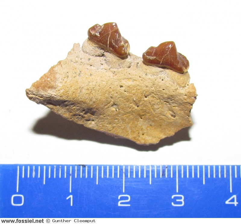Een leuk stuk achterkaak van een zeehond waarin nog twee kiezen vast zitten.