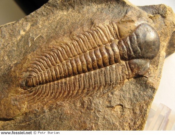 Klassieke trilobiet uit het Barrandium. Vervelling, maar het stuk heeft alles; thoracopygidium, cephalon en de 2 librigena (vrije wangen). Complete (en intacte) volwassen beesten zijn zeldzaam, maar dit geldt voor alle trilobieten.