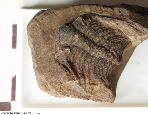 Compleet dier met wangen. Het staartstuk ligt naar beneden gedraaid. Deze Paradoxides is een zeer zeldzame soort in Tsjechië en verschilt in bouw maar weinig van zijn verwanten als P.pussilus en de klassieke Paradoxides gracilis. Jince omgeving.