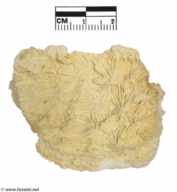 Negatief van de zijkant van deze koraal. Gevonden in de Meerssener kalk (IV f3–5).