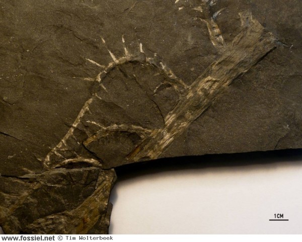 Rhiozoom van Calamites-type boom. Regionaalstratigrafie: Westfaliaan D (Asturiaan).