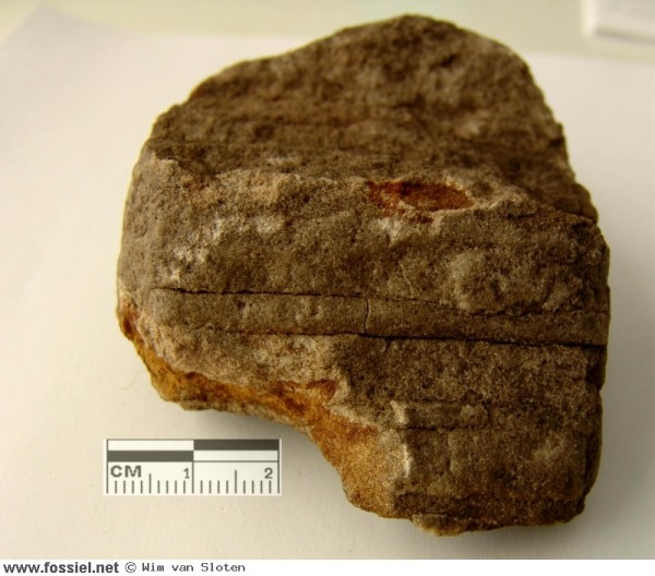 Skolithos is een zwerfsteenfossiel. Dit exemplaar is gevonden op het strand bij Bergen aan zee na een hevige storm in Juli