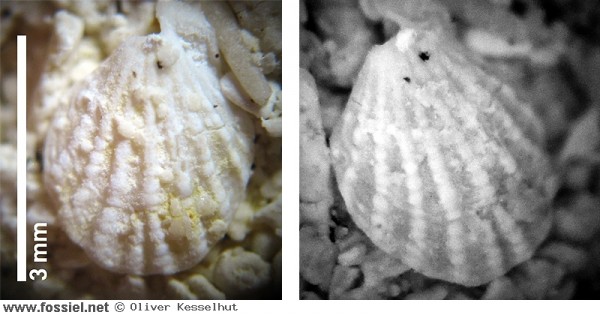 Dorsale klep van deze brachiopode.