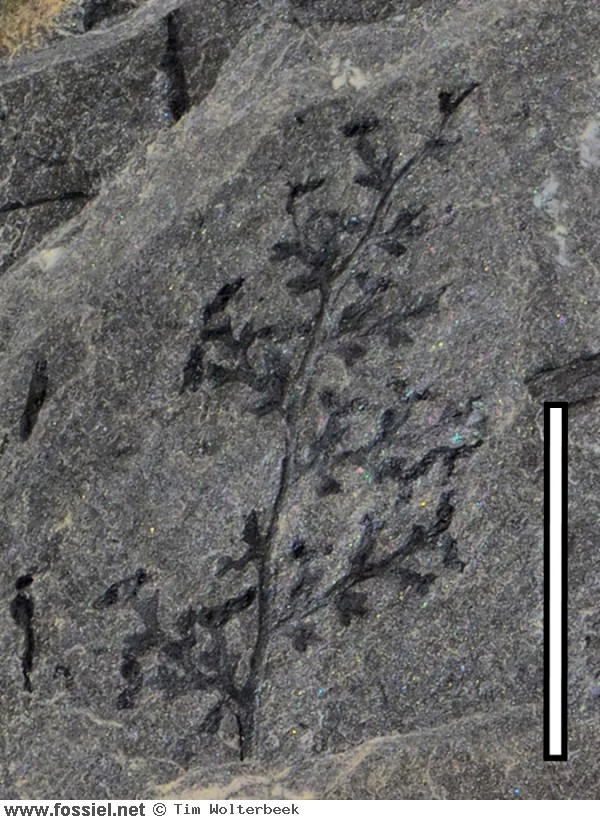 Regionaalstratigrafie: Westfaliaan A (Langsettiaan). Schaalbalk = 1 cm.