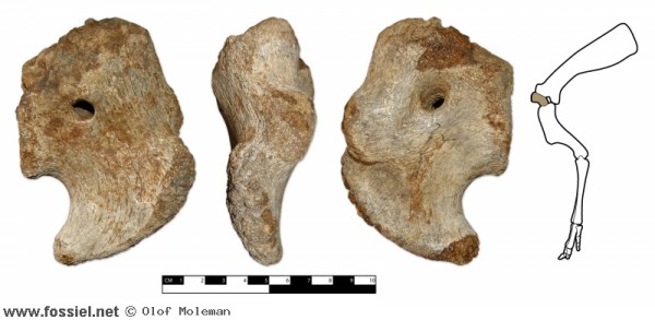 Een linker coracoid van een hadrosaurus, waarschijnlijk van Brachylophosaurus.